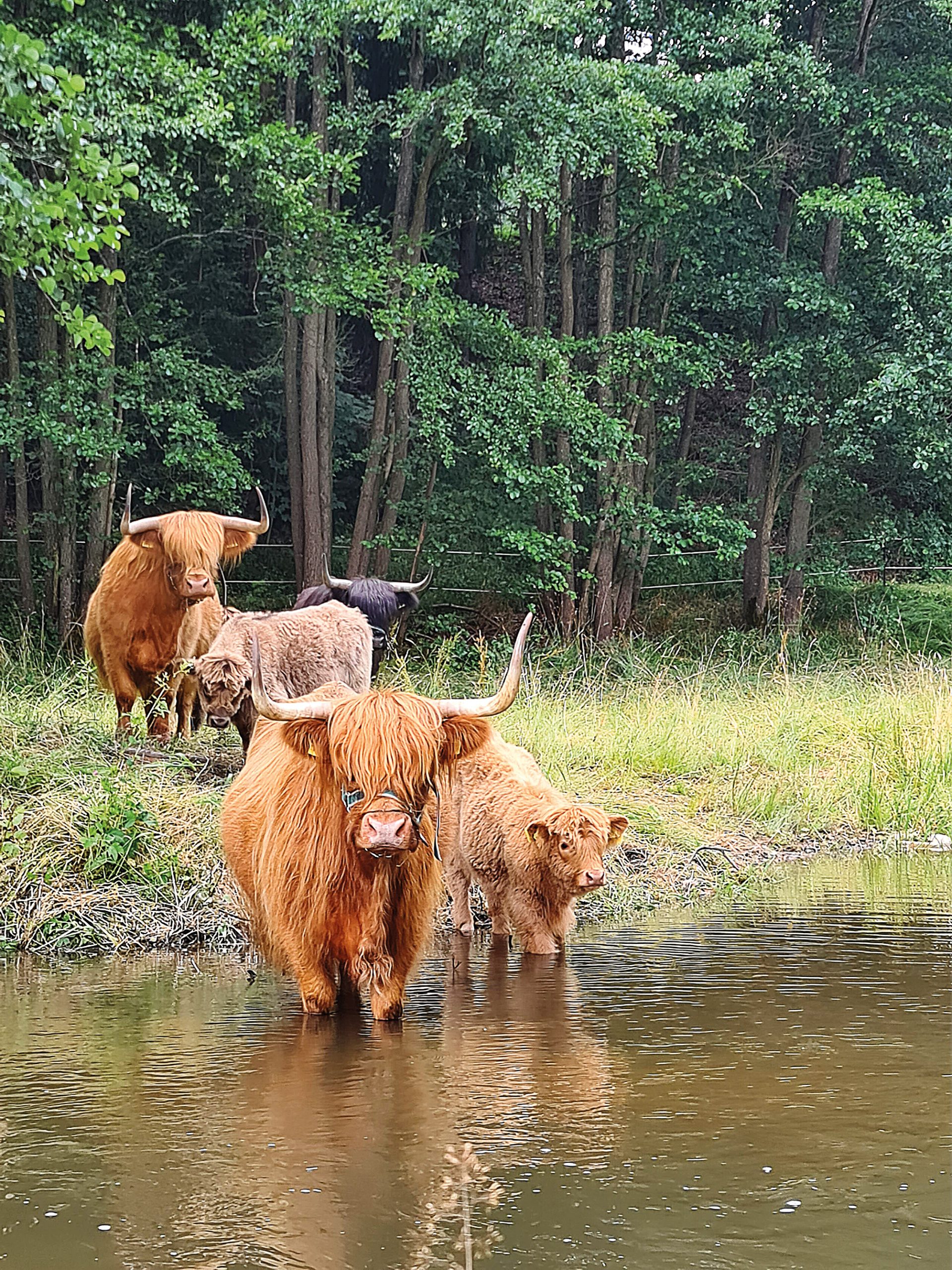 Herzstück unseres landwirtschaftlichen Betriebs sind all unsere Tiere; unsere Schottischen Hochlandrinder sind durch ihr Zottelfell ein besonderer Hingucker. Sie grasen mit viel Herz und Horn auf unseren weitläufigen Weiden.